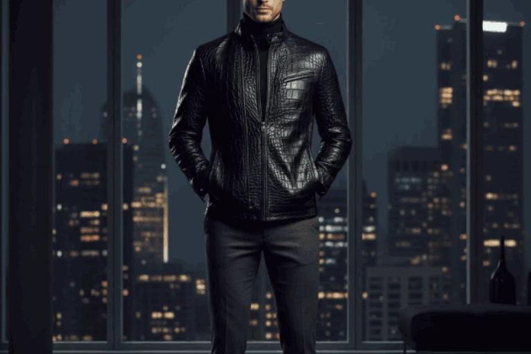 For the man demanding true contrast, 2025 shows a bold, new, elegant trend. That trend is the crocodile leather jacket for men and other high-end, embossed, exotic textures. These textured jackets are totally about visual drama and luxury. Whereas genuine crocodile leather is extraordinarily rare and unreasonably expensive, first-rate embossed leather is a trending option that delivers the same distinctive, scaled texture. The crocodile leather jacket for men is the extreme high-end style piece, generally possessed in deep, dark colours like black or burgundy to let the texture speak entirely for itself.