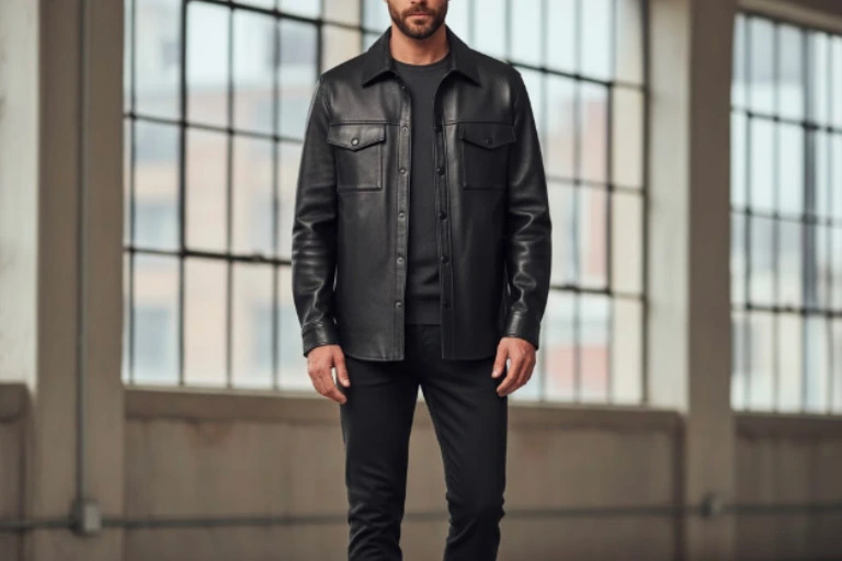 8. The Modern Leather Shirt Jacket (Shacket): Lightweight and Relaxed