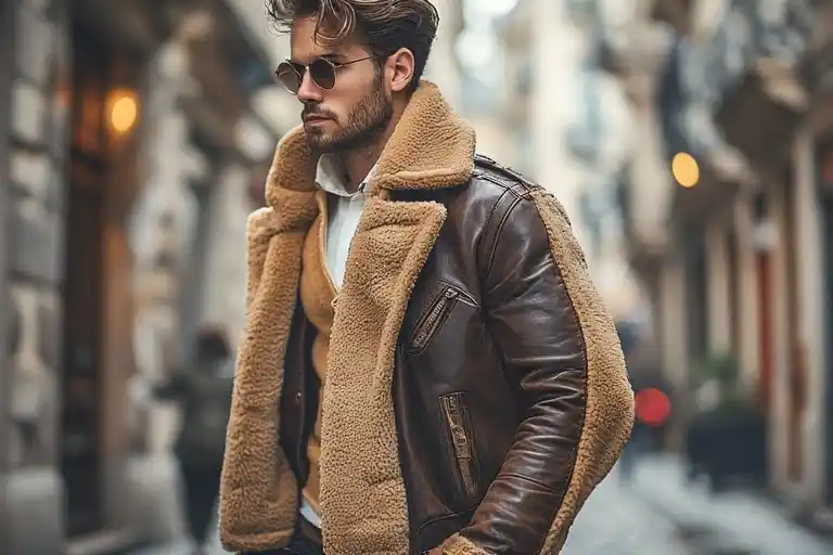 The flight jacket, initially design for air force pilots, is now a definitive style staple., but this year it is being redesigned. The 2025 leather bomber jacket for men features brave colors, oversized figuration, and experimental textures.